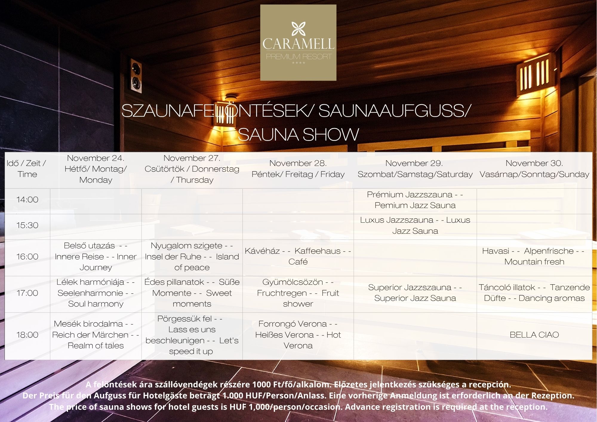 Advance registration is required at the reception or via email at sparecepcio@caramell.hu.